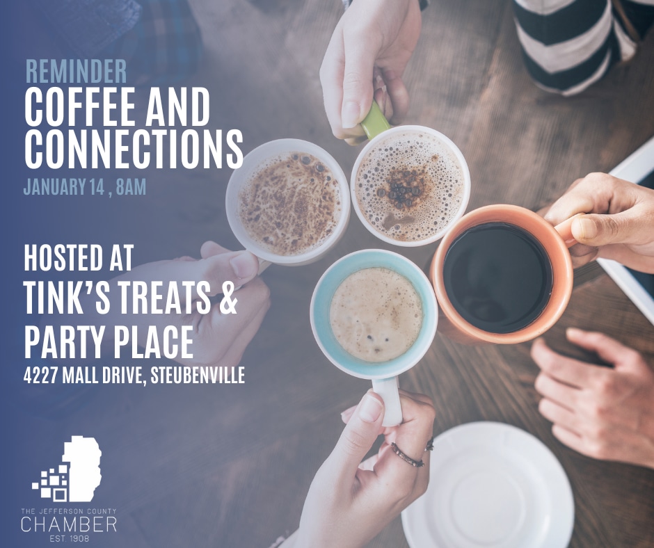 Please join us for Coffee & Connections, a monthly networking event sponsored by the Jefferson County Chamber of Commerce. After a delicious hot breakfast, each attendee can give a brief commercial about their business or organization and distribute business cards, brochures, coupons or other promotions.