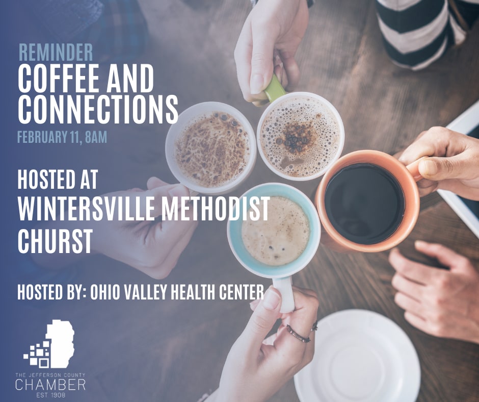 Please join us for Coffee & Connections, a monthly networking event sponsored by the Jefferson County Chamber of Commerce. After a delicious hot breakfast, each attendee can give a brief commercial about their business or organization and distribute business cards, brochures, coupons or other promotions.